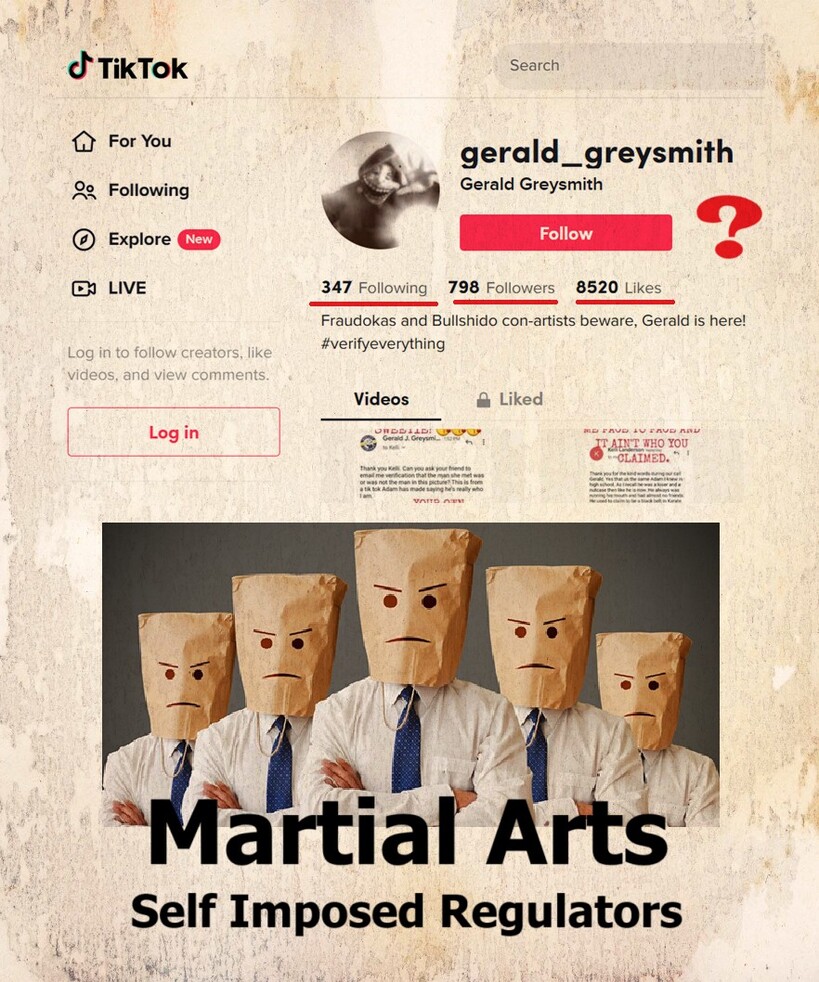 Gerald Greysmith et.al. Is a fake identity continued by others in the same investigative martial arts cause gang circle, meaning it became more of a conspirators collective name pseudonym than a single person’s name. Collaboration: The pseudonym allowed multiple contributors to publish under one consistent identity, giving the work continuity in the chicanery even as individuals changed. Bottom line: Gerald Greysmith is a pseudonym originally used by a man named Greg (also fake name), later adopted by other martial arts cause gang-bangers in the same dragnet network. It is not the real name of a single individual, but rather a protective and collaborative identity for publishing martial arts causes fraud investigations without ever signing a sworn affidavit to the truth of anything ever. Indications are that "Grey Smith" is actually a common sock puppet with non-binary tendencies.